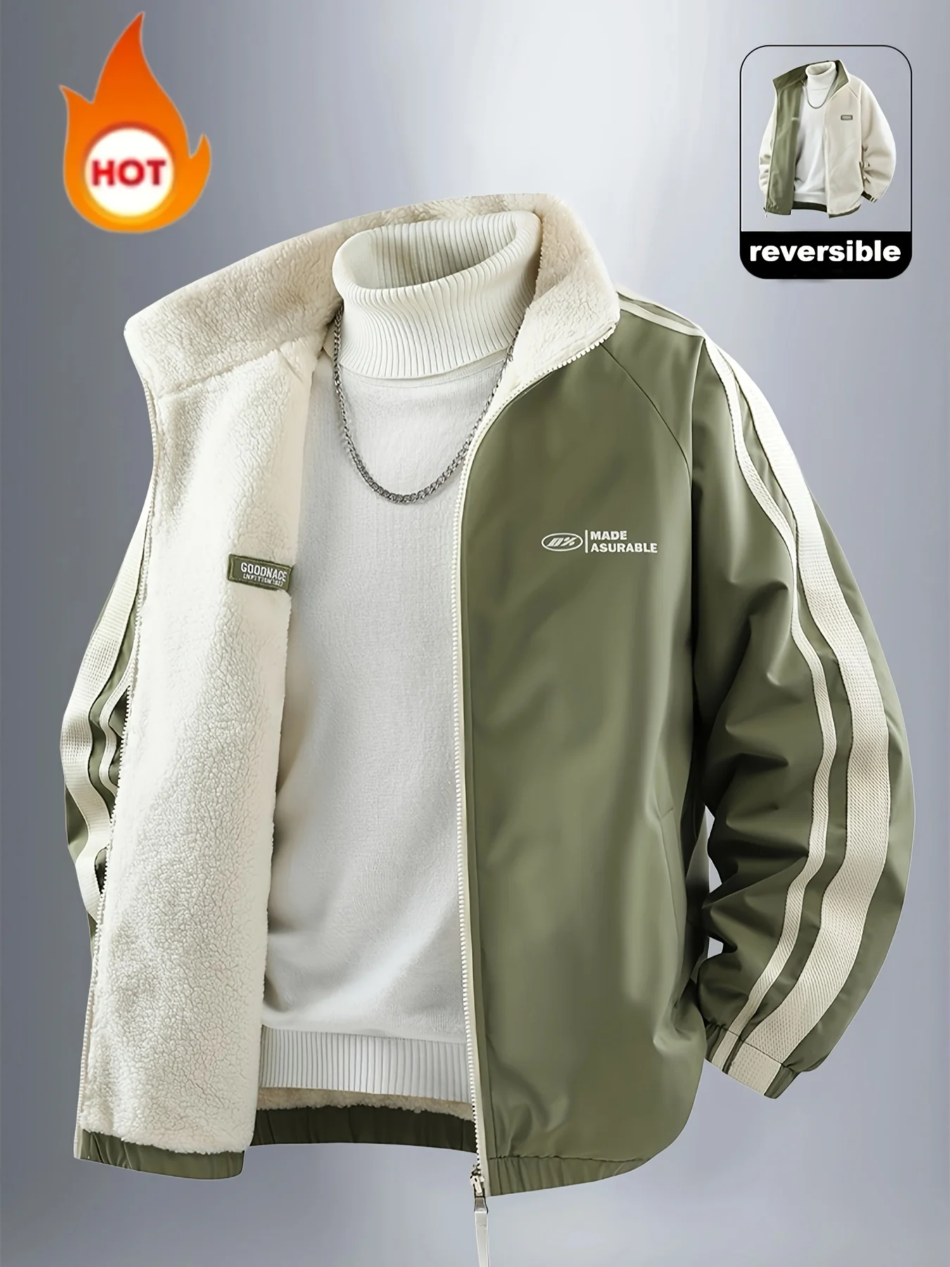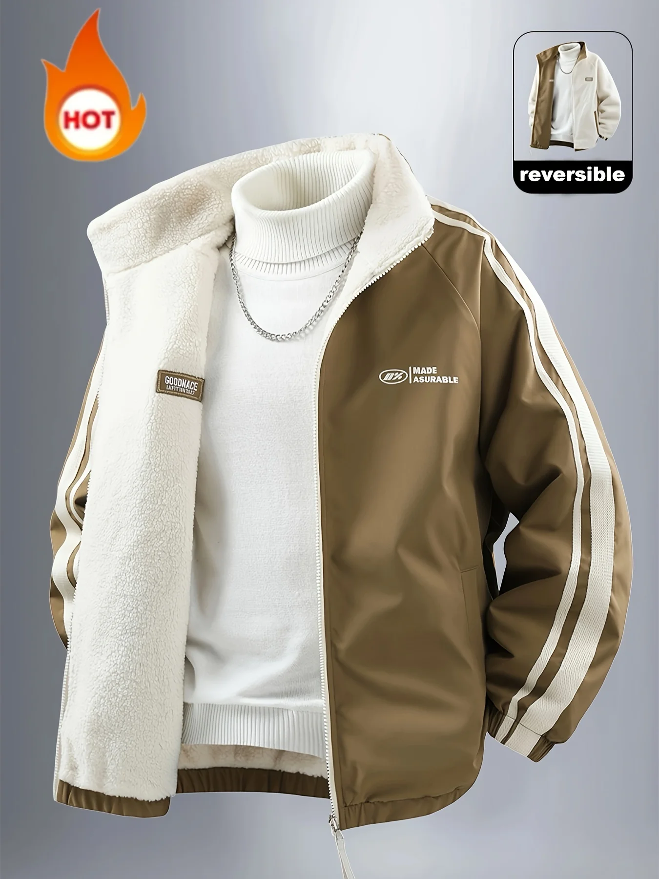 Men's Jacket, Men's Casual Outdoor Sports Warm Jacket, Reversible Jacket, Popular Fashion Couple Jacket, Windproof and Wear-Resistant Fabric, Soft and Comfortable, Men's Loose Jacket