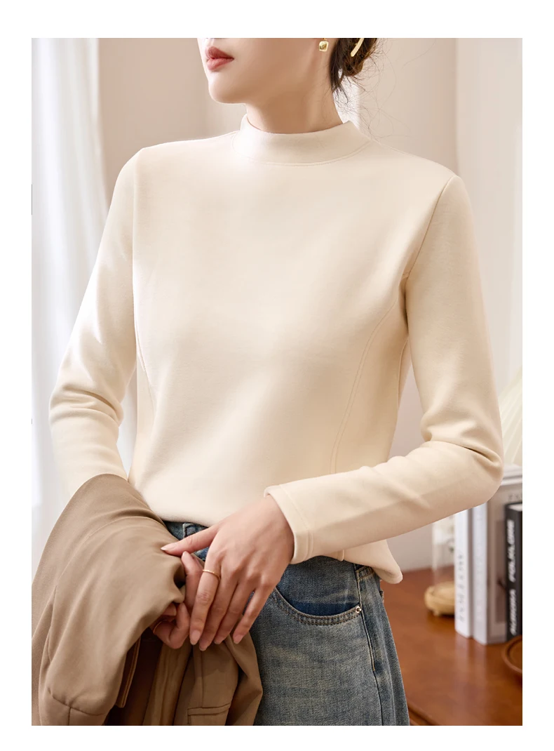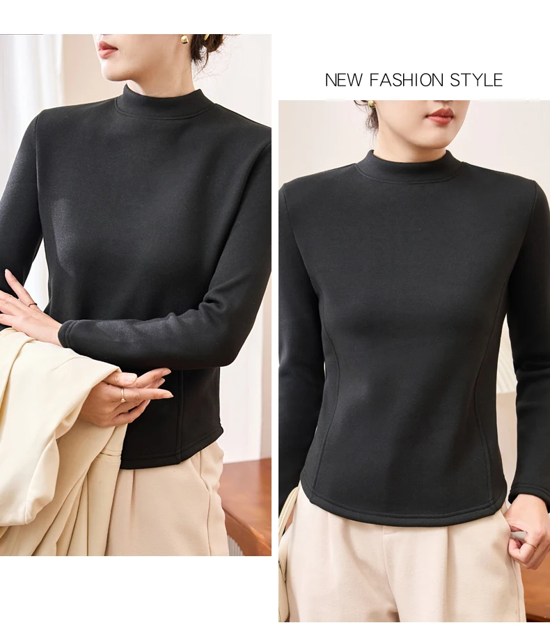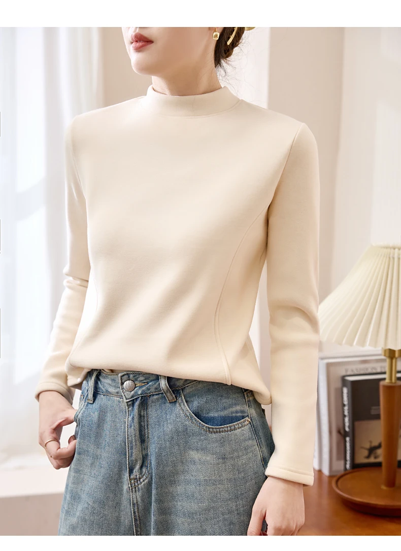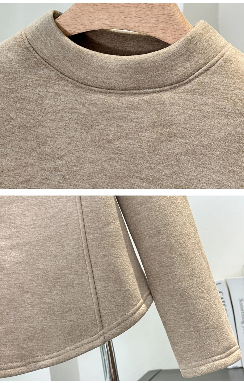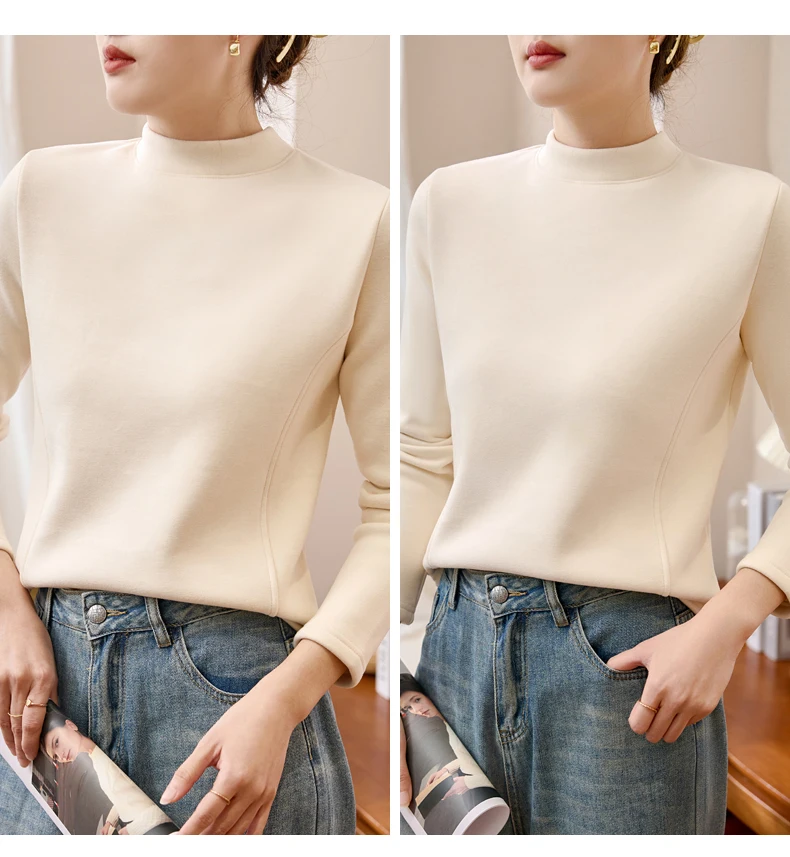 Winter Half Turtleneck Solid Long Sleeve T-Shirt Women New Thick Warm Tops Soft Pullovers Simple Chic Clothes for Cold Weather