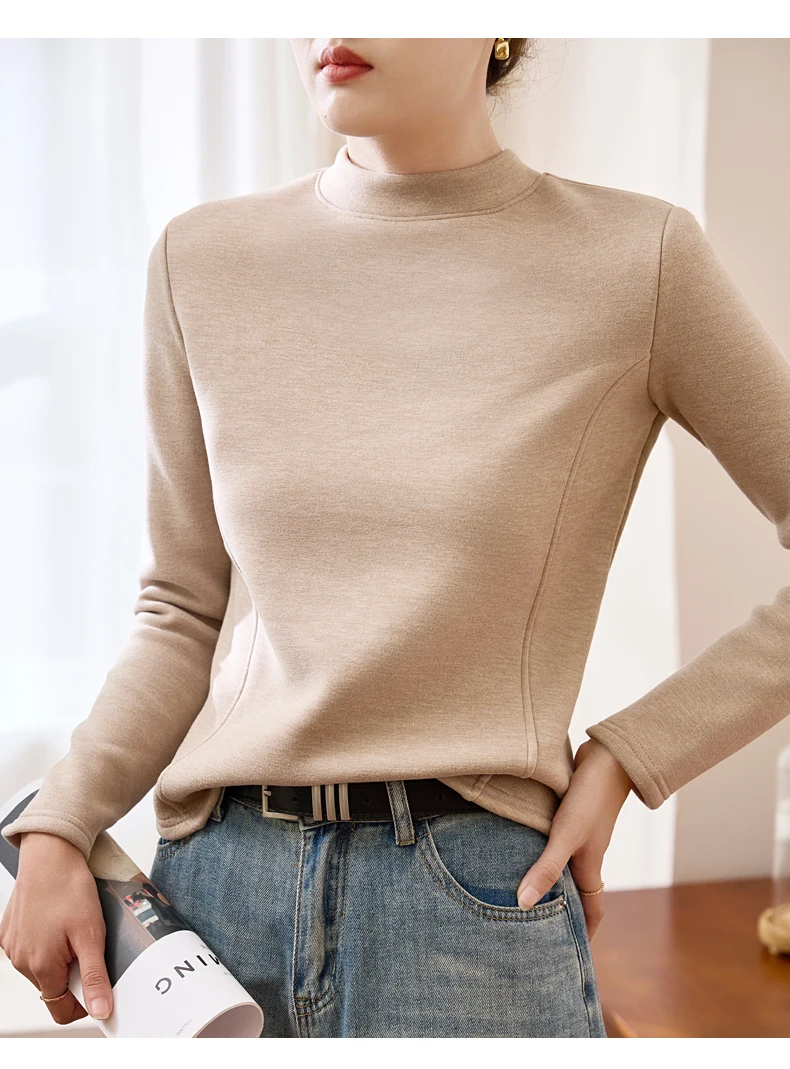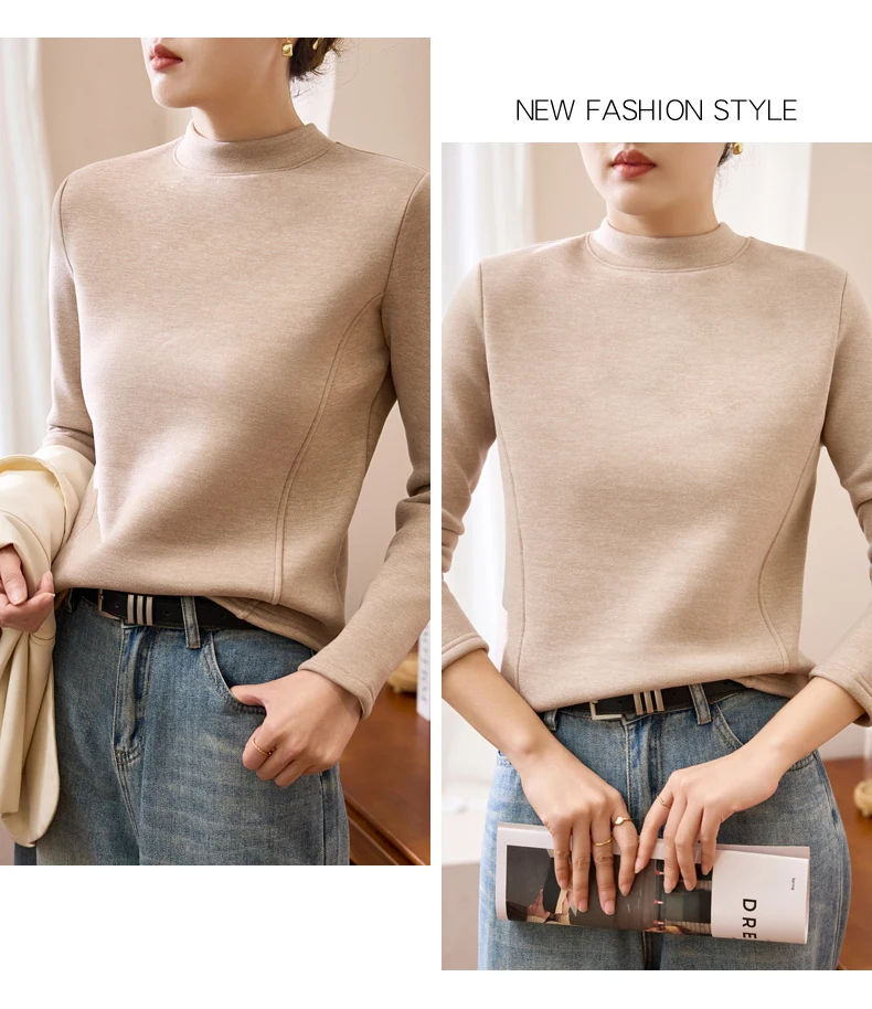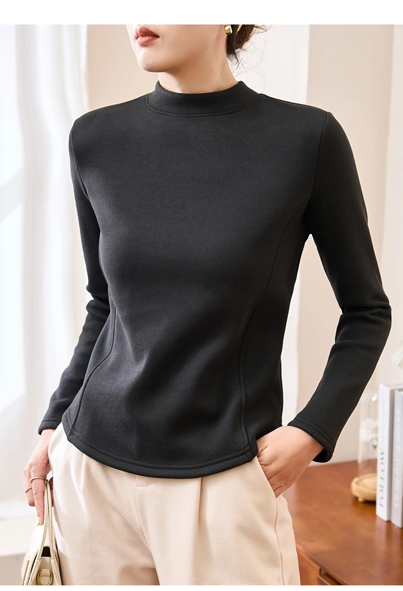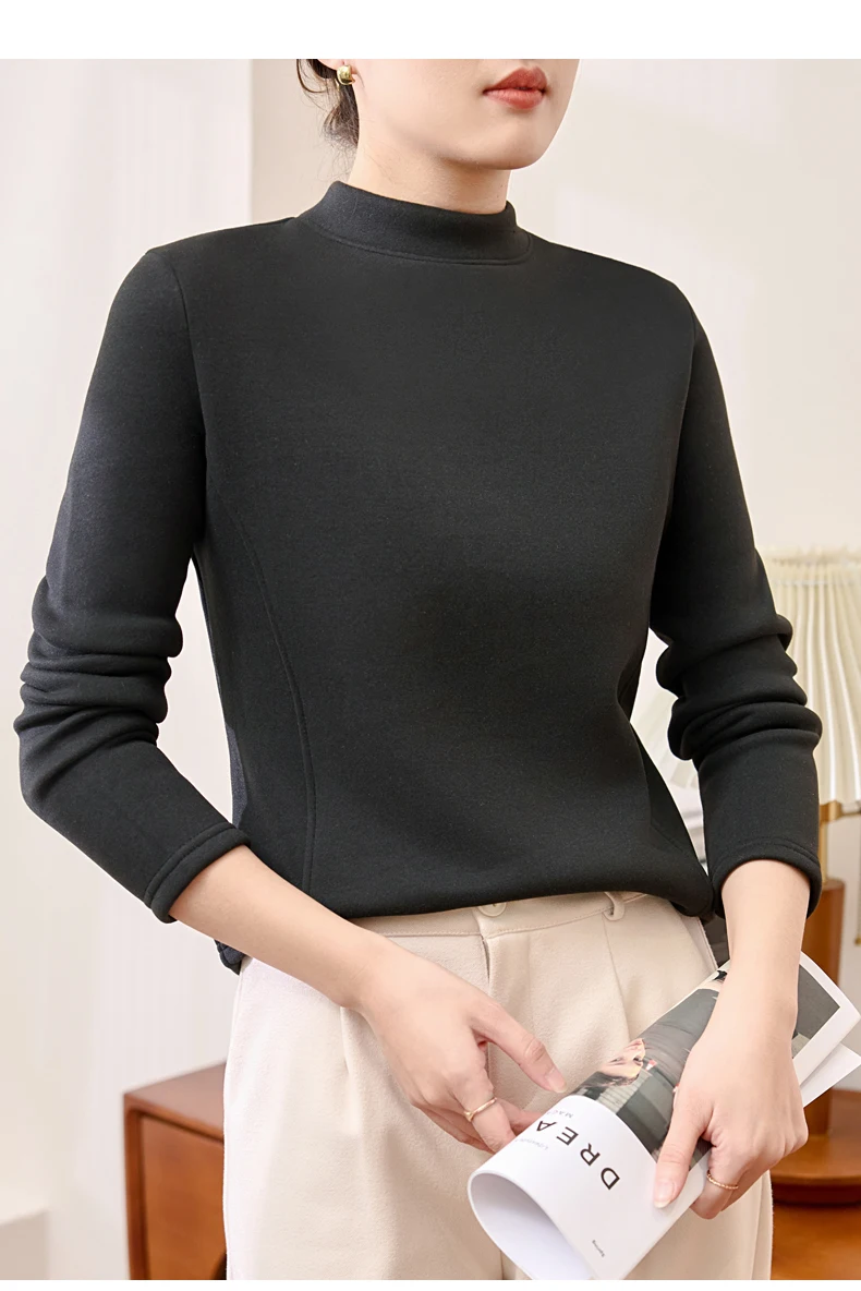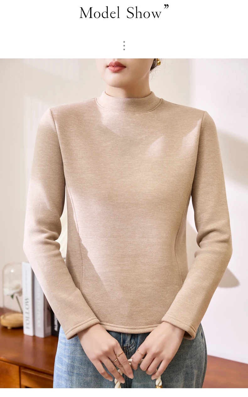 Winter Half Turtleneck Solid Long Sleeve T-Shirt Women New Thick Warm Tops Soft Pullovers Simple Chic Clothes for Cold Weather